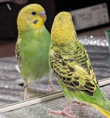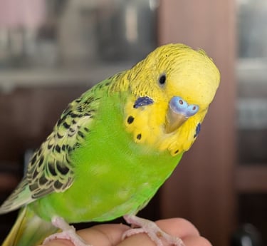A small green parrot whose gentle spirit inspires care, love, and hope for all animals and nature around us.